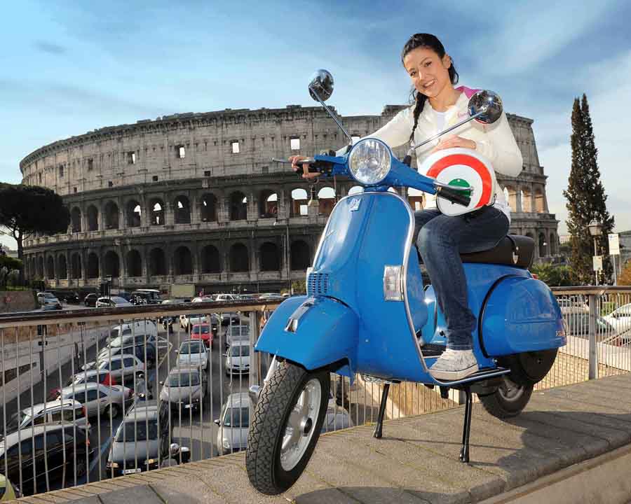 Grips baru, terbuat dari karet hitam, dengan logo produsen Italia dan finish krom. Logo Vespa klasik juga menghiasi pusat dek baru, sekarang disempurnakan dengan cetakan berbahan glossy.